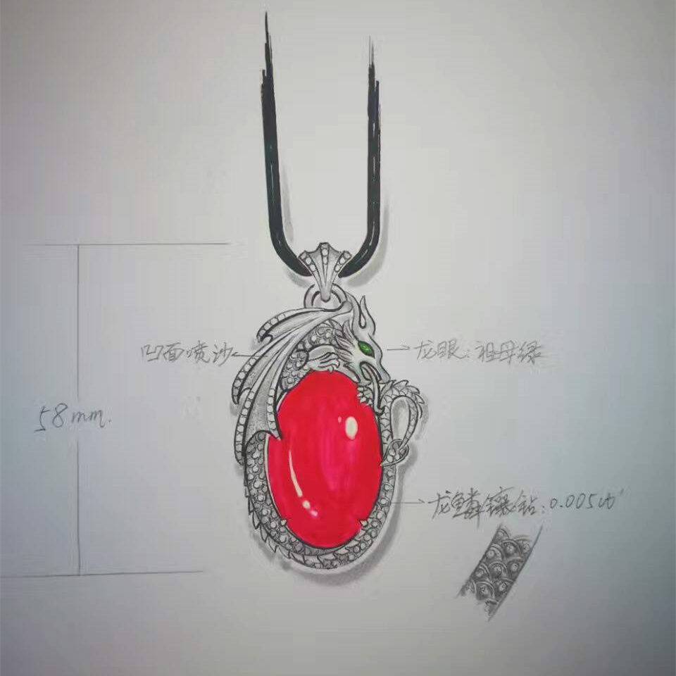 说明:主石为红纹石,副石为钻石及祖母绿。